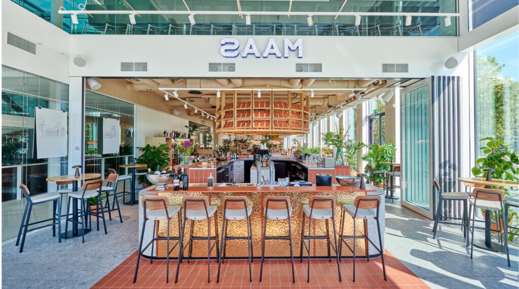 Ons restaurant Bar Bistro SAAM verwelkomt je graag voor, tijdens of na je bezoek. Gelegen aan het Forumplein, in het hart van Brightlands Maastricht Health Campus, is het de ideale plek voor een goede kop koffie, lunch of een gezellige borrel.