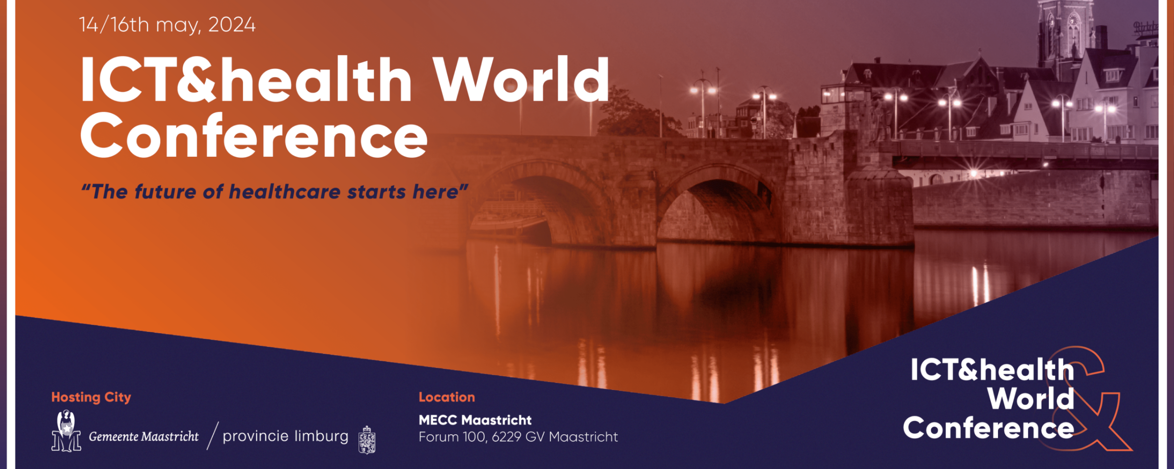 Van 14 tot 16 mei 2024 zullen leiders en professionals in de gezondheidszorg, overheidsfunctionarissen, patiënten, bedrijven en ontwikkelaars uit de hele wereld in Nederland bijeenkomen voor de internationale ICT&Health World Conference, waar zij kennis, oplossingen en mogelijkheden om de transformatie van de gezondheidszorg te verbeteren met innovatieve technologieën, nieuwe financiële modellen, en mondiale partnerschappen te onderzoeken, terwijl de mogelijkheden die Nederland te bieden heeft worden onderzocht.