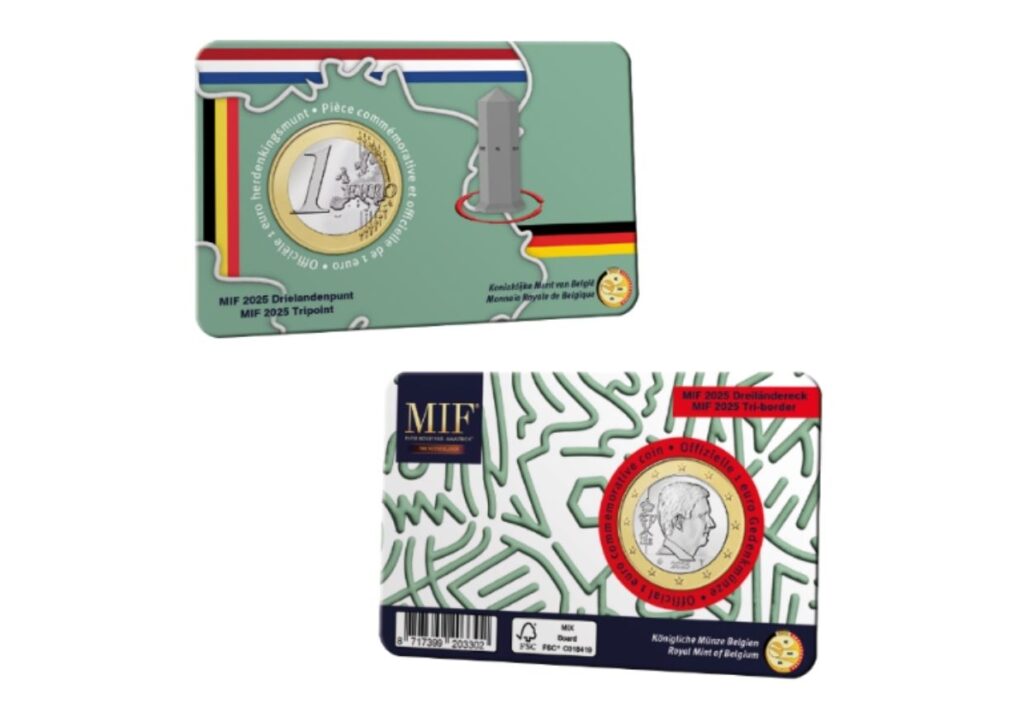 Ook de Koninklijke Munt van België komt met een bijzondere uitgifte: een coincard met een 1 Euro muntstuk ‘Drielandenpunt’, in een gelimiteerde oplage van 1.500 stuks. Deze unieke euromunt wordt niet in circulatie gebracht en is exclusief verkrijgbaar tijdens de MIF.