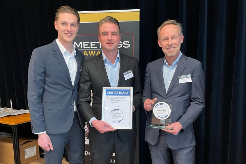 De Meeting Awards is een jaarlijks initiatief van vakblad Meetings, bestaande uit vier publieksprijzen onderverdeeld in de categorieën ‘Beste Vergaderlocatie’, ‘Beste Evenementenlocatie’, ‘Beste Trainingslocatie’ en ‘Beste Congreslocatie’. Gisteren heeft MECC Maastricht de award voor ‘Beste Vergaderlocatie van het jaar 2023’ in ontvangst mogen nemen. Eerder werd MECC Maastricht uitgeroepen tot ‘Beste Congreslocatie’ van het jaar 2021. De overige awards werden gewonnen door de Jaarbeurs in Utrecht – Beste Congreslocatie, Gardens Business Centre Oudlaen in Utrecht– Beste Trainingslocatie en Atlastheater Wildlands in Emmen– Beste Evenementenlocatie.
